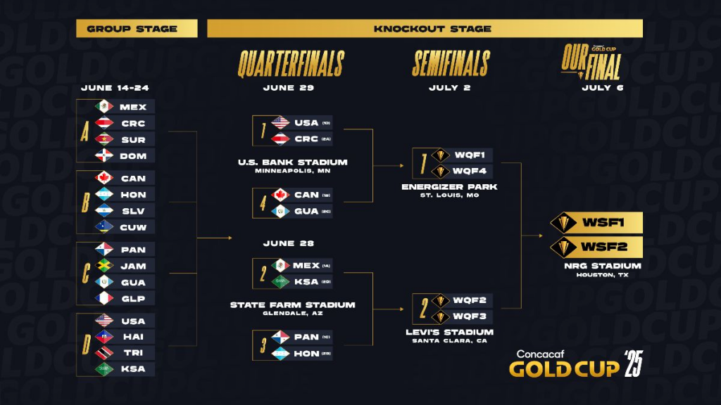 28 de junio: Panamá vs Honduras y México vs Arabia Saudita – State Farm Stadium 29 de junio: Canadá vs Guatemala y Estados Unidos vs Costa Rica – U.S. Bank Stadium Las entradas para todos los partidos de la Fase de Eliminación Directa están disponibles en GoldCup.org Miami, FL (miércoles 24 de junio 2025)– Tras la finalización de la Fase de Grupos […]