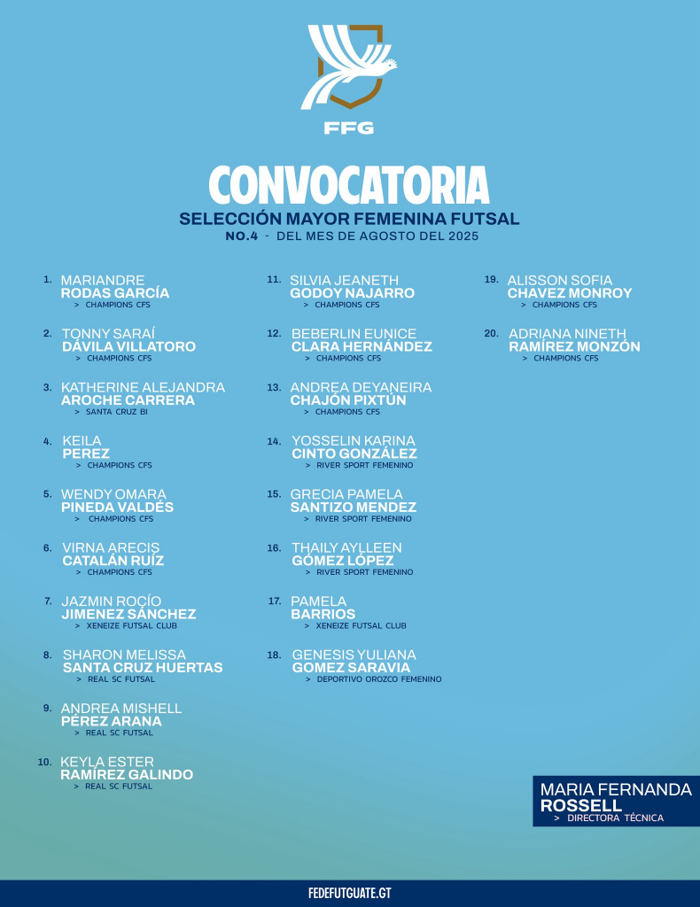 SELECCIÓN MAYOR FEMENINA FUTSAL – CONVOCATORIA AGOSTO